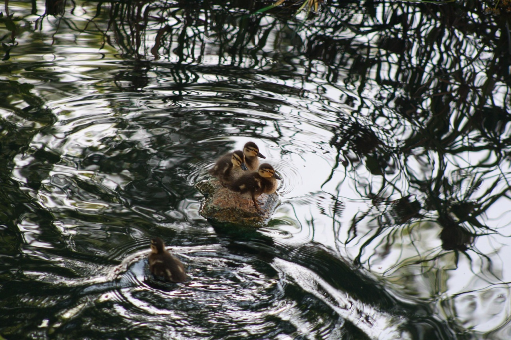 Der ihr Grundstück umgebende Wald und der Teich mit Enten sind zentrale Elemente, die eine harmonische, aber auch mystische Atmosphäre schaffen. Der Wald symbolisiert oft das Unbewusste, das Verborgene und die Verbindung zur Natur, während der Teich mit seinen Enten Frieden und Gelassenheit darstellt. Diese Symbole reflektieren die innere Reise der Charaktere und die Suche nach Identität und Zugehörigkeit. Die Präsenz von Naturmotiven verstärkt das Gefühl von Rückzug und Reflexion, was für die Entwicklung der Handlung entscheidend ist.